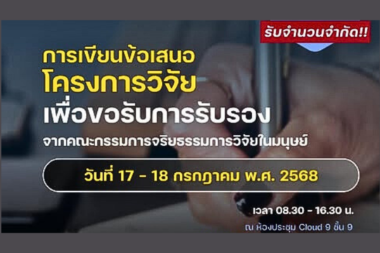ขอเชิญคณาจารย์ นักวิจัย บุคลากร และนักศึกษา มจพ. อบรมเชิงปฏิบัติการ ”การเขียนข้อเสนอโครงการวิจัยเพื่อขอรับการรับรองจากคณะกรรมการจริยธรรมการวิจัยในมนุษย์“🏥ขอเชิญคณาจารย์ นักวิจัย บุคลากร และนักศึกษา มจพ. อบรมเชิงปฏิบัติการ ”การเขียนข้อเสนอโครงการวิจัยเพื่อขอรับการรับรองจากคณะกรรมการจริยธรรมการวิจัยในมนุษย์“📝 . 🗓️ ในวันที่ 17 - 18 กรกฎาคม 2568 ⌚️ เวลา 08.30 – 16.30 น. 🏬 ห้องประชุม Cloud 9 ชั้น 9 อาคารสำนักวิจัยวิทยาศาสตร์และเทคโนโลยี ‼️ ฟรีไม่ View More |